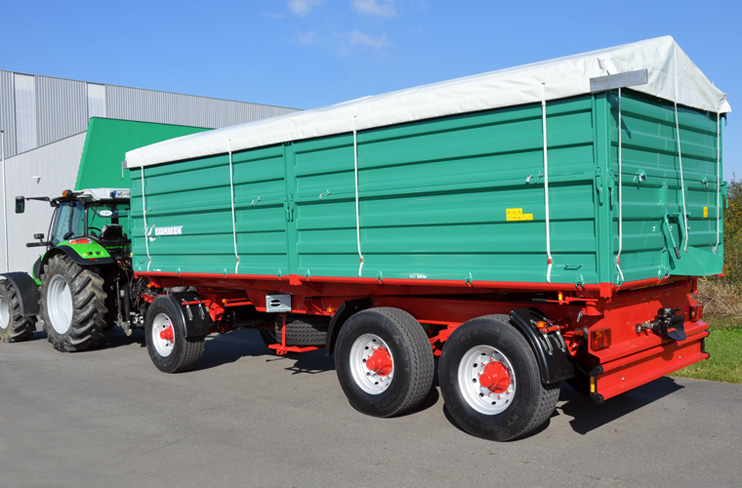 Stabil C-profilból készült alsó és felső oldalak. Három robusztus tengely, 40 illetve 60 km/h kivitel. Oldalfal emelő rugók a könnyebb kezelés érdekében. A parabolikus rugózás szavatolja a maximális terhelhetőséget és biztonságot. Hosszanti oldalak középen oszloppal. Stabil leszerelhető oszlopok biztosítják az oldalak egyszerű és biztonságos zárását. Háromszögletű első és hátsó magasító. Csúszásgátló lépcső és kezelőpódium – a ponyva biztonságos kezelése érdekében. A felszerelt sárvédők megakadályozzák a pótkocsi szennyeződését. Hátsó aláfutásgátló.